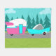 Denna Retro campare-/släp- och bilullfilt presenterar ett modernt mitt- århundrade, den minimalist tecknadteckningen som ska lämnor som, du ordnar till för att ta till den öppna vägen. En vördnad till 50-tal, denna design presenterar en vintageturkosbil med bästa vit och att dra ett kitschy reser släpet till dess finaldestination. Den perfekt återställda retro RVEN har en shock rosa lower - halvan, den bästa halvan för vit och en turkosblixt kasta i sig att avskilja tvåna. Dörren i sidan av camparen är också turkos. Finalbrytningen är shock rosavingen som hem sticker fram från baksidaen av denna på hjul. De lyckliga camparna bilar besegrar en grå färgväg. Körbanan omges av frodigt grönt gräs. I bakgrunden kan vi se krickasilhouettesna av en veritabel skog av cederträträd, mot en aquahimmel med pösigt, ljust - blåttmoln. Denna design är perfekt för alla från pensionerade hippies, nybörjarehipsters eller någon som önskar att återuppleva några underbara barndomminnen. Den bäst delen är, att ingen frågar, "är oss där ännu?",