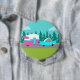 Denna Retro-kamera/-släpvagn och -knapp har ett modernt, minimalistiskt tecknad teckning som lämnar redot att ta sig till den öppna vägen. Som en hyllning till 1950-talet har den här konstruktionen en vintage turkofferbil med vit topp, som drar en kitschyfärs resvagn till slutdestinationen. Den helt återställda, retro RV har en shock rosa under halva, vit överdel och en turkoshöjande blixt som separerar de två. Dörren på kamerans sida är också turkos. Den sista accenten är att vinge skjuter ut shock rosa från hemmet på hjul. Lycklig-kamerorna kör en väg med grått. Vägen är omgiven av lush, grönt gräs. I bakgrunden kan vi se tealsilhuetterna från en veritabel skog av cedar träd, mot ett akvarium himlar med fuktiga, ljusblå moln. Denna utformning är perfekt för alla från pensionerade hippies, unga hippstrar eller någon som vill återuppleva några underbara barndomsminnen. Det bästa är att ingen frågar: "Är vi där än?"