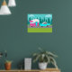Denna Retro-kamera/släpvagn och bil Poster ett modernt, minimalistiskt tecknad teckning som lämnar dig redo att ta dig till den öppna vägen. Som en hyllning till 1950-talet har den här konstruktionen en vintage turkofferbil med vit topp, som drar en kitschyfärs resvagn till slutdestinationen. Den helt återställda, retro RV har en shock rosa under halva, vit överdel och en turkoshöjande blixt som separerar de två. Dörren på kamerans sida är också turkos. Den sista accenten är att vinge skjuter ut shock rosa från hemmet på hjul. Lycklig-kamerorna kör en väg med grått. Vägen är omgiven av lush, grönt gräs. I bakgrunden kan vi se tealsilhuetterna från en veritabel skog av cedar träd, mot ett akvarium himlar med fuktiga, ljusblå moln. Denna utformning är perfekt för alla från pensionerade hippies, unga hippstrar eller någon som vill återuppleva några underbara barndomsminnen. Det bästa är att ingen frågar: "Är vi där än?"