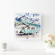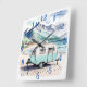 Retro Camping Caravan Beach Scene Fyrkantig Klocka
