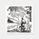 En svart och vit bild av en man som campar på sjö eller flod. Han står vid en campingbrand och tält. Bild från 1940 års Vintage Printers Bok (utan upphovsrätt).