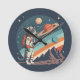 Retro Cat Astronaut Cosmic Space Illustration Rund Klocka