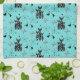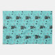 En söt mönster av kattunge, atomstjärnor och abstrakt som inspirerats av halvsekelmodeller i tonvis av turkosa blått, svart och vitt.