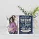 Rustik retro chalkboard stil mörk blått bakgrund och ljusa retrotypografi med anpassningsbarnas årsnummer och namn i familjen . Lägg till ditt favoritfoto eller ditt husdjurs eller baby först helgdag bild och anpassa sedan texten. Modern och glad väg att skicka semesterhälsningar i lycklig till alla dina vänner och nära och kära med högtidlig vintage. Kan användas för nyårs- och julfestinbjudan, personlig hälsning, korporativ hälsning.