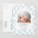 Retro checkar meddelande om blått pojkfoto vykort