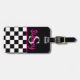 Retro Checkerboard Neon Pink Name Monogram Bagagebricka