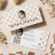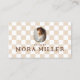 Turn heads with this chic light pink checkerboard design, featuring a stylish retro circle photo frame—perfect for showcasing your face, logo, or nail art. Personalize with your name, professional title, and specialty to instantly highlight your expertise. The reverse side mirrors the elegant checkerboard pattern and provides space for social media icons, contact details, and booking info—making it easy for clients to connect and schedule appointments. Fully customizable to match your brand colors and style, this business card blends vintage charm with modern sophistication. Whether you’re a nail artist, nail technician, or beauty professional, this card is a standout way to present your brand with confidence and flair. Design and layout by © Moodthology