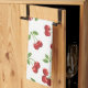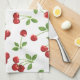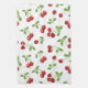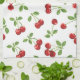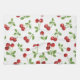 Nostalgisk utformning med mogna röda körsbär och grönt löv mot vit bakgrund.