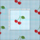 Den här söta designen har en mönster av körsbär på en blå gingham-checkbakgrund.