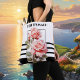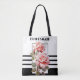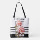 Elegant retro-handväska med rosa akvarellrosor på en svart-vit design med ränder. Vacker som gåva till brudtärnor och kan anpassas för alla andra tillfällen.