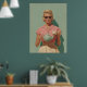 Gå in i ett solbelyst ögonblick av tidlös charm med den här vintage-inspirerade teckningen. En påklädd kvinna, klädd i mitten av århundradet mode med en ro-rosa blouse, gingham-kjol och pärlhalsband, står emot en pastellvägg. Hennes klassiska blondiner och katt-öga-solglasögon ekar elegansen från 1950-talet. Hon har en tekanna på mynta och en grönt tekopp, vilket antyder ett eftermiddagstin som infunderats med retro glamor. Den här bilden fångar upp en gammal tids respit och sofistikering, perfekt för älskare i vintage stil, retromode och nostalgisk dekoration. Perfekt för utskrifter, poster och livsstilstillbehör, det här biet ger en varm, snyggt vib till vilket utrymme eller vilken produkt som helst. Oavsett om du utformar köksartiklar, hemdekoration eller snyggt, framkallar den här designen lugnens sofistikering och sansad charm.