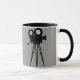 En svartvit mugg, med en digital illustration av en Retro Cinekamera och Tripod. Tillgängligt i andra alternativ. Besöka vårt lager för mer bion släkta muggar och andra moderiktiga gåvor.