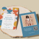 Gå in i en värld av nostalgi och fira kärlek i ett riktigt groovy stil med vår Pappra inbjudan till Retro Vintage bröllop under 70-talet! Den här inbjudan innehåller en fängslande mönster inspirerad av den pulserande andan från 1970- och 1960-talen, som kombinerar halvcirklar och gråkammusslor. Mönster är elegant utformat i en palett av blått, orange och gult, som är placerad mot en klassisk bakgrund och skapar en balans mellan nostalgi och elegans i perfekten. Kortet är omvänt i en matchande djup blått med utrymme för bästa förlovning-foto (eller par-foto) och QR CODE. Det är mycket enkelt att anpassa: lägg till information om gästens namn och fullt med hjälp av mallen.