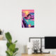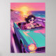 Retro Coastal Drive 90s Anime Sunset Poster