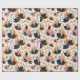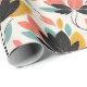 A Colorful Wrapping Paper Designed In Retro Colors Of Black, Teal, Gold And Orange Shaped In A Floral Leaf Design