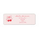 Retro Coquette Körsbärsröd och Rosa Returadress med handritad stil körsbär med en slinga. Namn och adress är i röd handskriven stil.