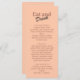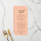 This retro modern wedding menu card features a warm coral peach background with bold, playful typography. The design combines a funky vintage style with a clean, modern layout, making it both stylish and easy to read.