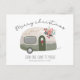Retro Country Camper Glad Jul-kort - har en söt vintage husvagn som är dekorerad för julen. Kortet har vacker script typografi, ditt namn och en julhälsning på baksidan som du kan använda eller lägga till din egen text. Postkortet är en del av en samling.