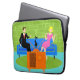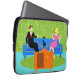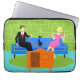 Det här Retro-paret med Kat Laptop sleeve har ett tecknad par som försöker bli mysigt medan de tittar på tv på ett modernt, blått soffa i mitten av århundradet. Katten har dock andra idéer. På ena sidan av soffa finns det en stilig man i ett svart kostym med röd slips. På andra sidan snyggten finns det en vacker, blondinsk kvinna i form av en passande shock rosa. Sak skulle gå underbar om det inte vore för den svarta katten, som har gjort anspråk på centrala soffa-kudden. 1960-talets stil, minimalistisk konsminkdesign är satt i en snyggt vardagsrum. Bakdroppen i soffa är en grönt, stenvägg. På akvariet golv finns det en grönt-shag matta, som matchar stenväggen. I början av designen ser vi baksidan av en tv-orange med kanin öron, som verkar spela kattens favoritprogram på tv.