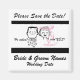 En retroaktiv stil Spara magneten Date bröllop med en svart linje teckning av en brud och ett stam och text som lyder "Spara datum!" och "Han frågade! Jag sa JA!" Du kan enkelt lägga till ditt bröllop-datum och namn till anpassadet Spara datum magneter.