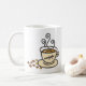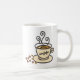 Tvättande men märkligt hysterisk tvillingtypo med kopp i kaffe- och kaffebönsgrafik.