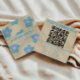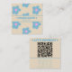 Retro Cream Blue QR Code Groovy Floral Fun Boho Fyrkantigt Visitkort