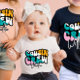 This particular design features a cute retro saying printed on the front that reads "Cousin Crew." with customizable name. The text is likely to be in a bold and fun font that adds to the retro playful and energetic nature of the message. The phrase "Cousin Crew" suggests that the baby is part of a lively and active group of cousins playing baseball, and celebrates the camaraderie and friendship that comes with having a big extended family. The design is likely to appeal to parents or caregivers who have a close-knit family and who wish to acknowledge the special bond between cousins. The message is inclusive and welcoming, highlighting the sense of belonging and community that can come with being part of a big family.
