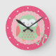 Retro Cute Uggla Rosa & Grönt Girly Rund Klocka