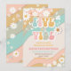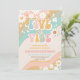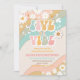 Fira ditt barns speciella dag med denna livfulla retro-födelsedagsinbjudan med färgglada vågiga ränder, glada tusenskönor, fredstecken, fjärilar och en leende sol. Perfekt för en groovy 5-års födelsedagsfest, denna lekfulla design sätter tonen för fred, kärlek och kul. Lätt att anpassa med dina festdetaljer, är den idealisk för retro-, hippie- eller regnbågs-tema firanden. Gör din händelse oförglömlig med denna iögonfallande inbjudan som utstrålar glädje och nostalgi.