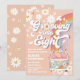 Fira i stil med denna retroinspirerade födelsedagsinbjudan till 8-årsdag med ett groovy 1960-tals hippie-tema. Designad med persikotona nyanser, vita prästkragar, fjärilar, halvmånar, stjärnor och en regnbåge, skapar den den perfekta känslan av fred, kärlek och kul. Den lekfulla skåpbilillustrationen med en fredssymbol tillför en nostalgisk touch, vilket gör den perfekt för barnkalas med ett boho- eller flower power-tema. Anpassa enkelt för att skapa en unik inbjudan som gästerna kommer att älska.