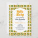 Grönt- och gult retro groovy daisy blomma i kryssrutan mönster födelsedagsinbjudan.