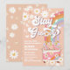 Fira i stil med denna retroinspirerade "Stay Groovy" födelsedagsinbjudan med lekfulla tusenskönor, regnbågar, fjärilar och en vintage hippiebil. Perfekt för en 1-års födelsedagsfest eller någon annan rolig fest, denna fantasifulla design fångar andan av fred, kärlek och glädje. Den livfulla persikofärgade bakgrunden och den feta typografin gör den iögonfallande, medan det nostalgiska 1960-talstemat ger en unik charm. Anpassa enkelt med dina festdetaljer för att skapa en minnesvärd inbjudan som gästerna kommer att älska.