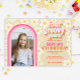 Retro Daisy Rainbow 4e födelsedagen fotoinbjudan Anteckningskort
