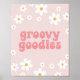 Retro Daisy Rosa boho Groovy Goodies Party Sign Poster