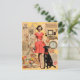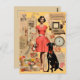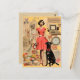 Retro dam i klänning med svart hund Collage Vykort