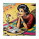 Retro Dam vid Beach Daydreaming om Mode Kakelplatta