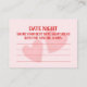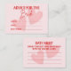 Ge din fest en lekfull retro-stil med detta rosa och röda datumkvälls- och rådkort till bruden. Ena sidan uppmanar gästerna att dela med sig av genomtänkta råd till bruden, medan baksidan är perfekt för roliga och kreativa idéer till datumkväll. En stilren och interaktiv souvenir som fångar kärlek, skratt och minnen som bruden kommer att värna om.