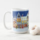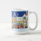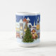 Denna julmugg med årstidsmotiv har en hemstadstema med en dekorerad julgran. En förtjusande semesterdesign att köpa till sig själv eller ge bort som present till den speciella personen.