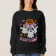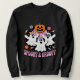 Tre lycklig spöken-boggi runt en rosa disco boll, medan en leende jack o’ lantern tittar uppifrån så "Spooky & Groovy"! Retro 70-talssats, pastellnyp, lila och orangar, samt godis och blommor accentuerar ge den här tröjan per roligt disco Halloween-fusion. Perfekt för kostymen tillval party, mysiga fallnätter eller någon som kärlek söt spöken med funky vibes.