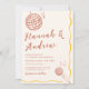 Celebrate your love with a touch of retro charm ✨ This fun and stylish wedding invitation features a warm neutral background accented with playful disco-inspired line art, musical details, and soft wavy borders. The hand-lettered script typography adds a romantic, personal feel, perfectly balanced with clean, modern text for your event details.