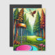 Retro-skivans golfbana med Eagle som flyger över gräs träd ai-konsten med vintage färg och campingvibe.