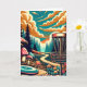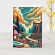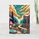 Ha ett magiskt födelsedagskalkylsgolfmatriskort. En unik golfbana för färgämnen i fält i retro-svampar, gräs träd och moln i vintage färg som orange, blå och röd.