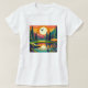 Söt vintagens solnedgång: golf, gräs träd, berg och en reflektion i sjö ai-konsten.