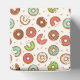En liten pusselbox (2 tum x 2 tum) med ett sött mönster som rymmer donturer som tumlar runt omkring. Rosa, grönt, brun och grädde färg verkligen ge, detta är en coola som känner sig bättre. En cirkel som läggs ovanpå med texten inuti.