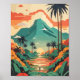 Retro Dschungel Illustration Grün Rot Poster