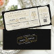 Personalize this unique and elegant black and gold vintage boarding pass ticket style all-in-one 4x9.25" wedding invitation featuring retro art deco banners and simple design elements over a passport style wavy line pattern and classic black column background design along with your custom QR code and wedding website for your guests to easily digitally RSVP to your big day on the front, and custom monogram on the backside in sophisticated old money typography and gold design banner details. Easily add your wedding wording and upload your QR code to make it uniquely your own. Instant digital file download is also available - perfect for evites, or to print at home or send to the print shop of your choice! Custom design requests, product additions to the collection, and template questions are always welcome - click the "message" button, or email direct: contact@figandlilyco.com. Design is lovingly created by Fig and Lily Studios ♥ Sending blessings and thanks for being here with us!