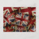 Roligt retro Union Jack flagga, sliten och smutsig, med ord "Union jack junkie" på den.