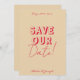 Den här moderna minimalistiska Bröllop spara datum-mallen för funky och retroaktiv användning är underbar för dig. Om du är tittar för en söt, elegant och enkel att anpassa Bröllop spara datum-mall .Ett mycket enkelt skript för blek av chic i mycket elegant, ett skript för rosa i bröllop spara datum. Med minimal röd magenta sparar du datum för fetstilt typografi på blek av rosa med ren funky. Med anpassadets förlovning eller bara avslappnad triom och bridans foto. Ta tag i snyggten bröllop spara datum och gör inbjudan verkligt engagerat.