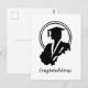 Ett svartvitt retrofoto av en kvinnlig examenstuderande. Text: Grattis. Bild från en 1940-tals Vintage Printers Book (utan upphovsrätt).
