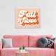 Den här återinspirerade falldesignen har en framträdande plats i frasen "Fall Vibes" i ett fet 3D-stil-teckensnitt som omedelbart uppmärksammas. Texten är lagrad med varm färg under hösten, inklusive orangar för rik, djupa och mjuka krämer, vilket skapar en djup och dimension som får ord att kasta sig över bakgrunden. Typografin vintage-stil med sitt mjuka, rundade ge i kant är en nostalgisk känsla, som påminner om den klassiska estetiken från 1970-talet. De lekfulla skuggorna och färg bidrar till designens dynamiska, öga-infångande dragningskraft.